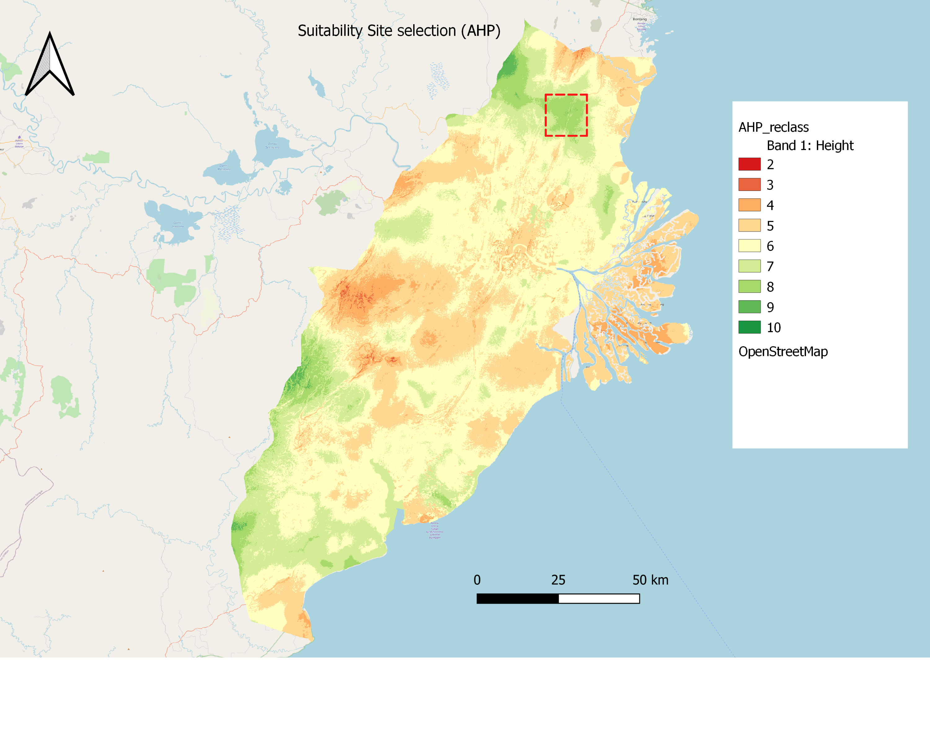 We had used Raster-based GIS Multiple‐Criteria Decision Analysis (GIS-MCDA), which integrates raster-based GIS modelling as well as the Analytical Hierarchical Process.