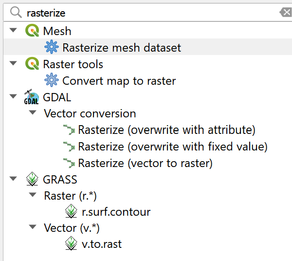 - Go to Processing Toolbox on the Right Hand Side of the page and select Rasterize.