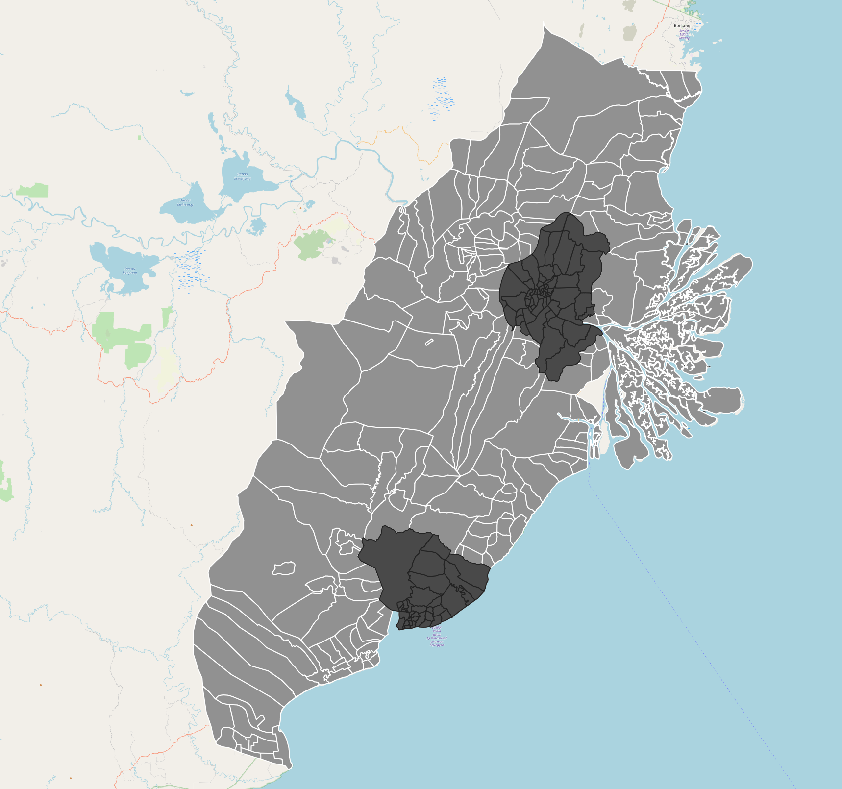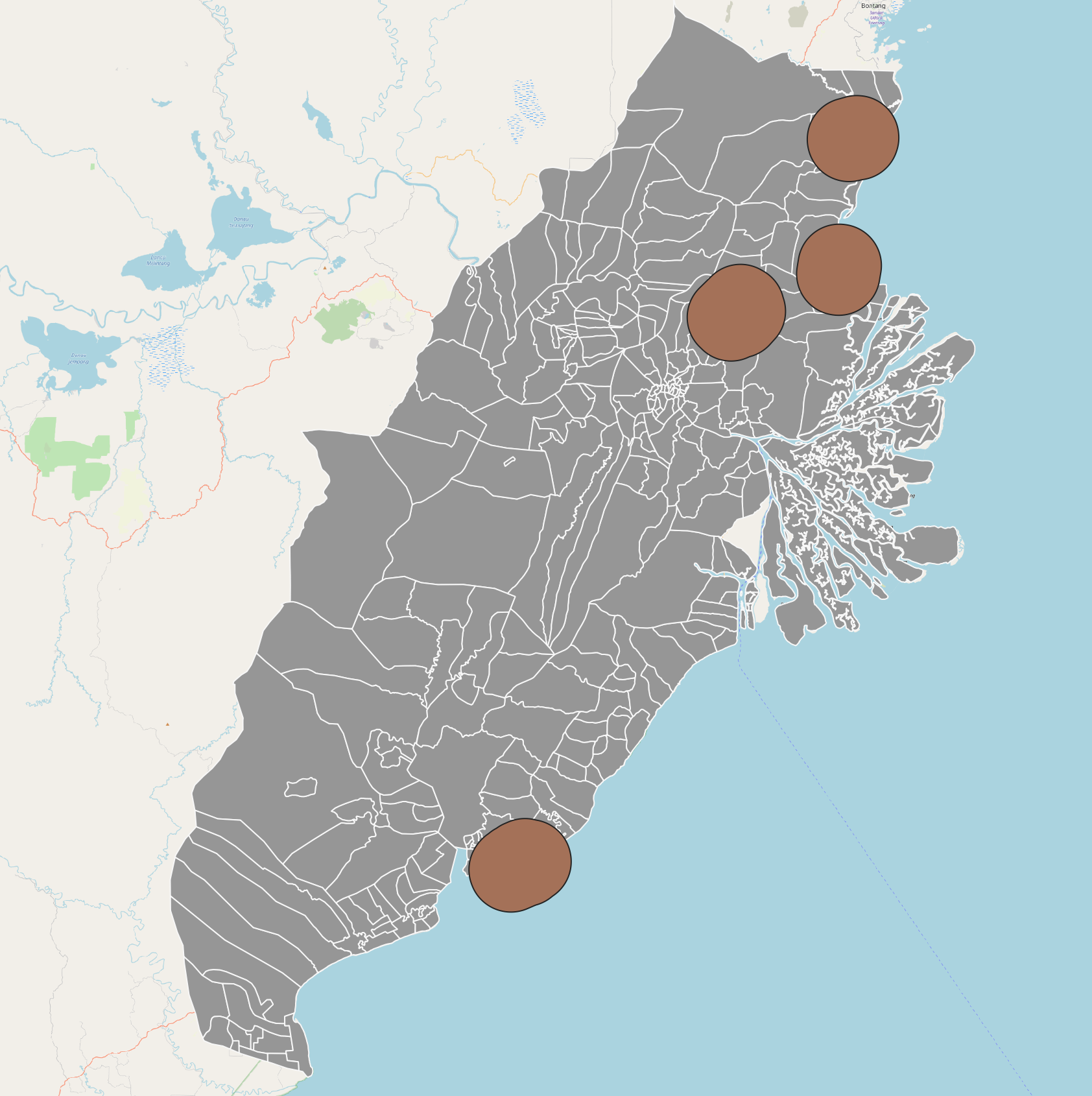 We will need to clip the urban settlements with respect to the city boundaries of Kota Balikpapan and Kota Samarinda.