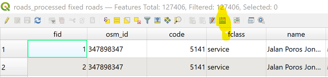 - We then exit the attribute table, go to the top panel and toggle editing by clicking on the pencil button on the top bars. Then we press CTRL+C to copy the features that we have selected.