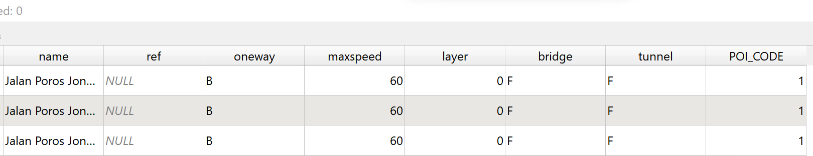 - To verify that it is created correctly in the attribute table there should be an additional column that is named “POI_CODE” with all values inside being 1.